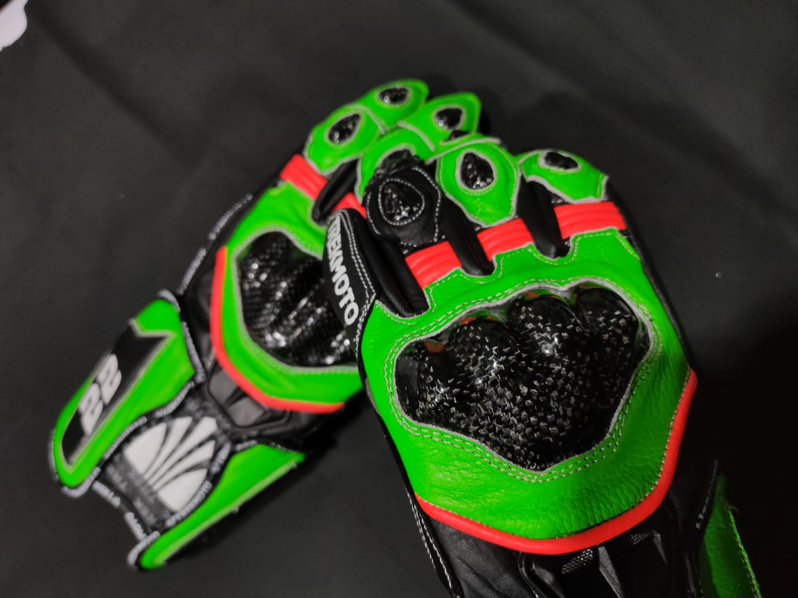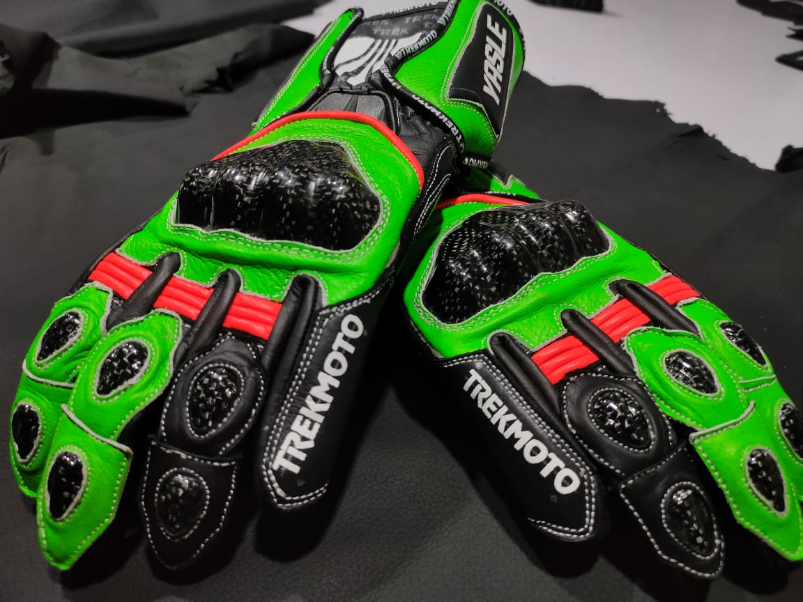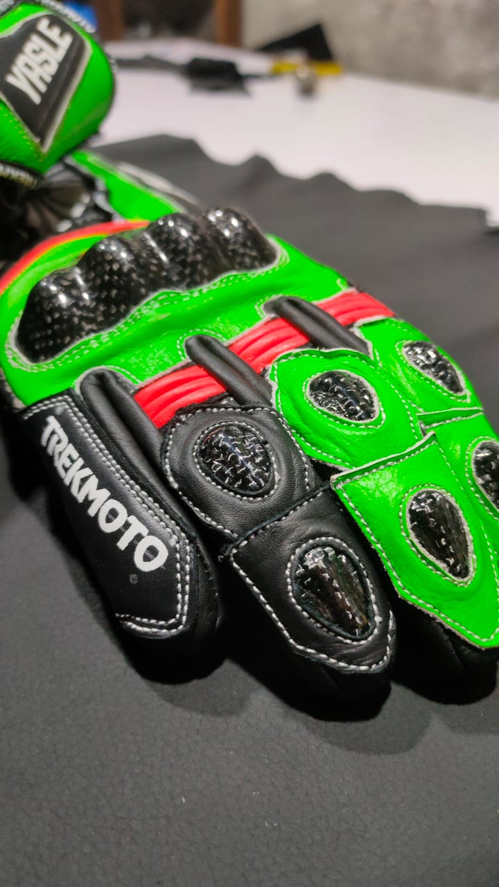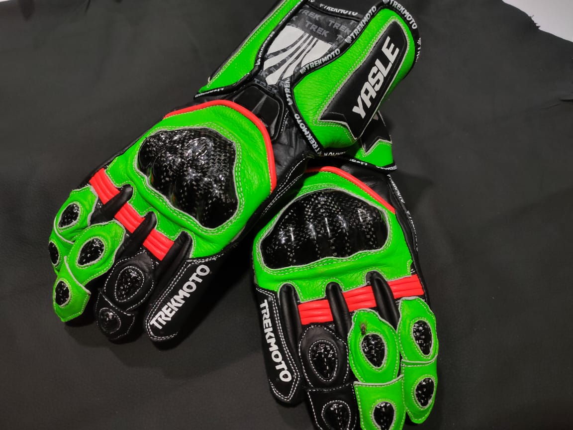 Fluro Green and Black Metal Pro Leather Race Gloves