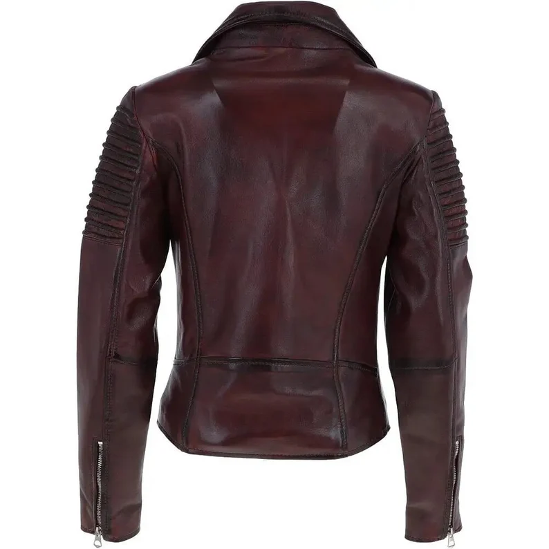 Women Burgundy Leather Biker Jacket Stylish Women Leather Jacket